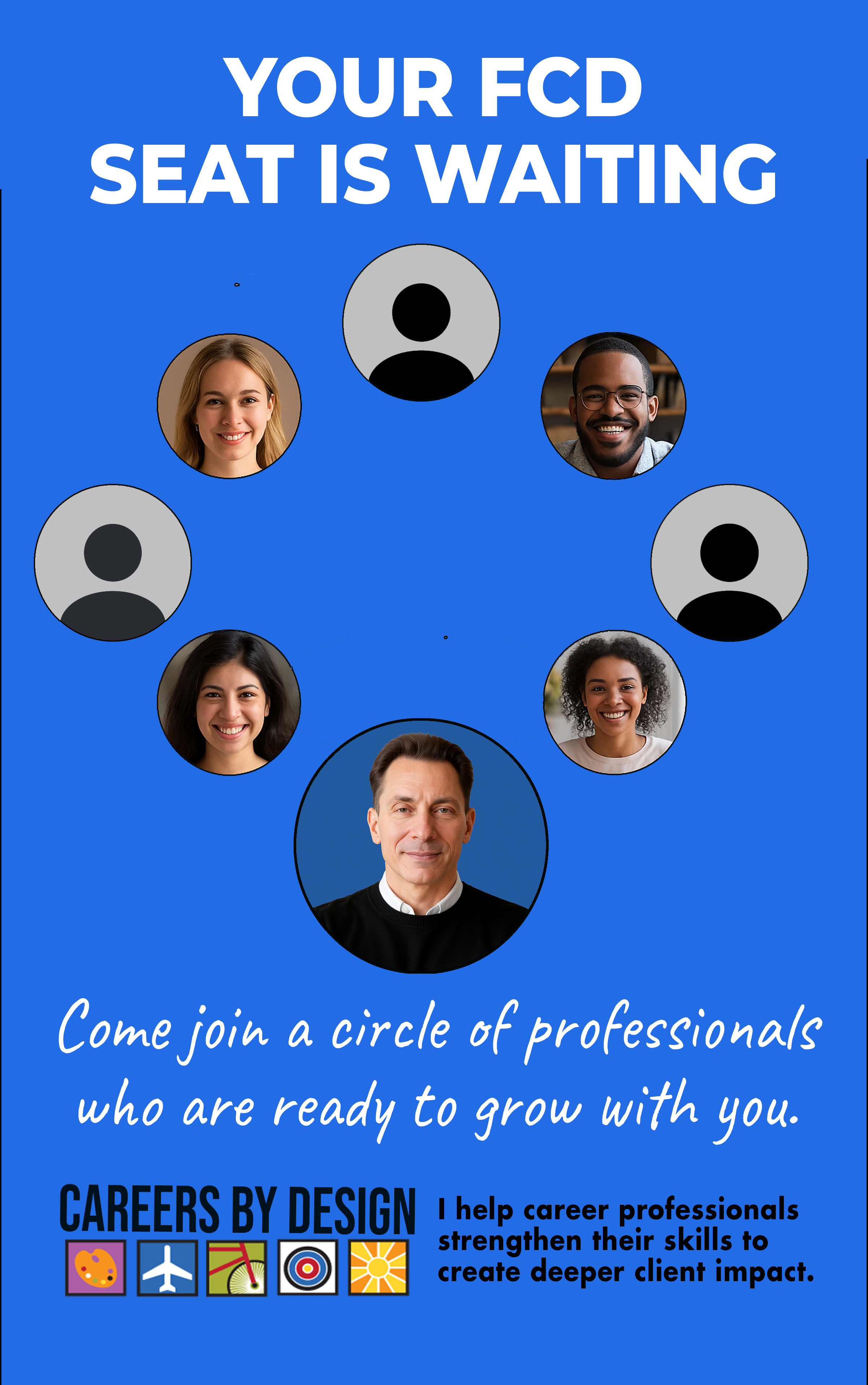 The Facilitating Career Development (FCD) program is an internationally recognized training certificate program for people working with clients/students in career development or job counseling. The 120-hour class meets to prepare you for success in the growing field of career development. This course combines face-to-face training with eLearning to give you the skills you need to work in any type of career development setting. The FCD title designates individuals working in a variety of career development settings who have met the requirements set forth by the Council on Credentialing & Education, Inc. (CCE) and the National Career Development Association (NCDA). Those who complete this course are qualified to apply to become a Certified Career Services Provider (CCSP) or a Global Career Development Facilitator (GCDF).